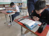 今日は教育委員の学校訪問でした。授業を参観した3年生社会では「新しい人権」について学びました。「(マンションの)屋根が階段状になっているの何で?」電子黒板に提示した写真から対話を始めました。「雪が落ちやすくするため?」、「ここに太陽があるとすると、こっちの建物が日陰になって…」自分の思ったことや考えていることをしっかり伝え、それを受け止めることができる3年生です。2年生数学では、方程式のグラフのかき方をグループで、1年生国語では連文節の練習問題を近くの人と。どちらも「こうじゃないかな~?」と粘り強く取り組む姿があり、とても良かったです。参観後に教育委員の方から「(どのクラスも)対話する姿が大変素晴らしい」とお褒めの言葉をいただきました。