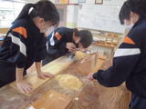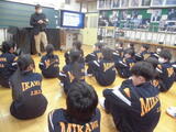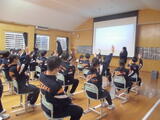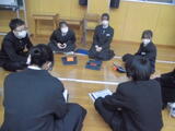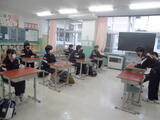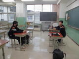 1年生の学活では、新しい仲間に早く学校に慣れてほしいと思い、手作りの歓迎会が開かれました。学校行事や部活動などを1年生の視点で紹介しました。外は雪がしんしんと降り続く中でしたが、教室内は温かな雰囲気に包まれていました。