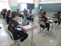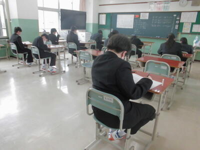 桜が満開になりました。今日、3年生は全国学力・学習状況調査に頑張りました。調査科目は国語、数学、理科、質問紙調査です。質問紙調査と理科がCBT(コンピュータでの入力回答システム)方式で行われました。生徒は最後まで粘り強く取り組んでいました。また、3年生は今度の日曜日に修学旅行に出発します。しおりで行程を確認したり、お土産の買い物プランを考えたりしました。当日に元気に出発できるよう健康に留意して過ごしてほしいです。