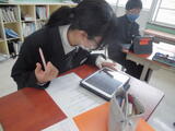 1・2年生は先日に訪問した阿賀町役場本庁の皆様へのお礼状書きでした。2年生は何度か書いたことがあるのですが、1年生にとっては初めてのことです。まずはF先生から基本的な書き方について説明を聞いてから、下書きをしました。また、Z先生からのアドバイス「丁寧な字で書くことで気持ちが伝わるよ」を聞き、自分を振り返り、大きく頷く生徒がいました。