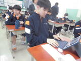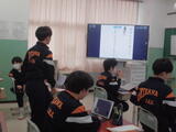 2年生国語の課題は「新聞記事を印象が変わるように書き換える」でした。「理数の順位、グラフや表などのデータを読み取りながら、記事を作成しました。途中でF先生が「大切なのは順番だよ」とアドバイスがあり、生徒は記事を再構築しました。1つの『正しい』言葉を鵜呑みにせず、その裏側にあるかもしれない別の表現や視点を探そうとすることは、現代の情報社会を生きる中学生にとって不可欠です。