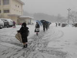 今朝の降雪により、校舎周辺にも多くの雪が積もりました。用務員さんが玄関前の除雪作業を行い、生徒たちが安全に登校できる環境を整えました。また、昨日はS先生が石けん液の補充を行っていました。感染症が流行するこの時期、手洗いは自分だけでなく周りの友達も守ります。