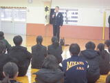 本日、津川警察署の御協力のもと、校内に不審者が侵入したことを想定した小中合同避難訓練を実施しました。今回の訓練では、「職員玄関から不審者が侵入」という設定で、生徒の安全確保と職員の連携体制を確認しました。生徒たちは、放送や先生の指示を静かに聞き、すみやかに避難行動をとるなど緊張感を持って取り組みました。また、訓練後には警察署の方から「学校外でも行動できるようにしてほしい」とのお言葉をいただきました。