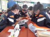 1年生総合では「上級学校訪問」に向けた準備が進んでいます。今日は交通手段調べです。タブレット端末や路線図を駆使しながら、グループで協力しながら真剣な表情でルートを検討していました。「どうやって目的地までたどり着くか」を自分たちで計画することも、大切な学習の一環です。